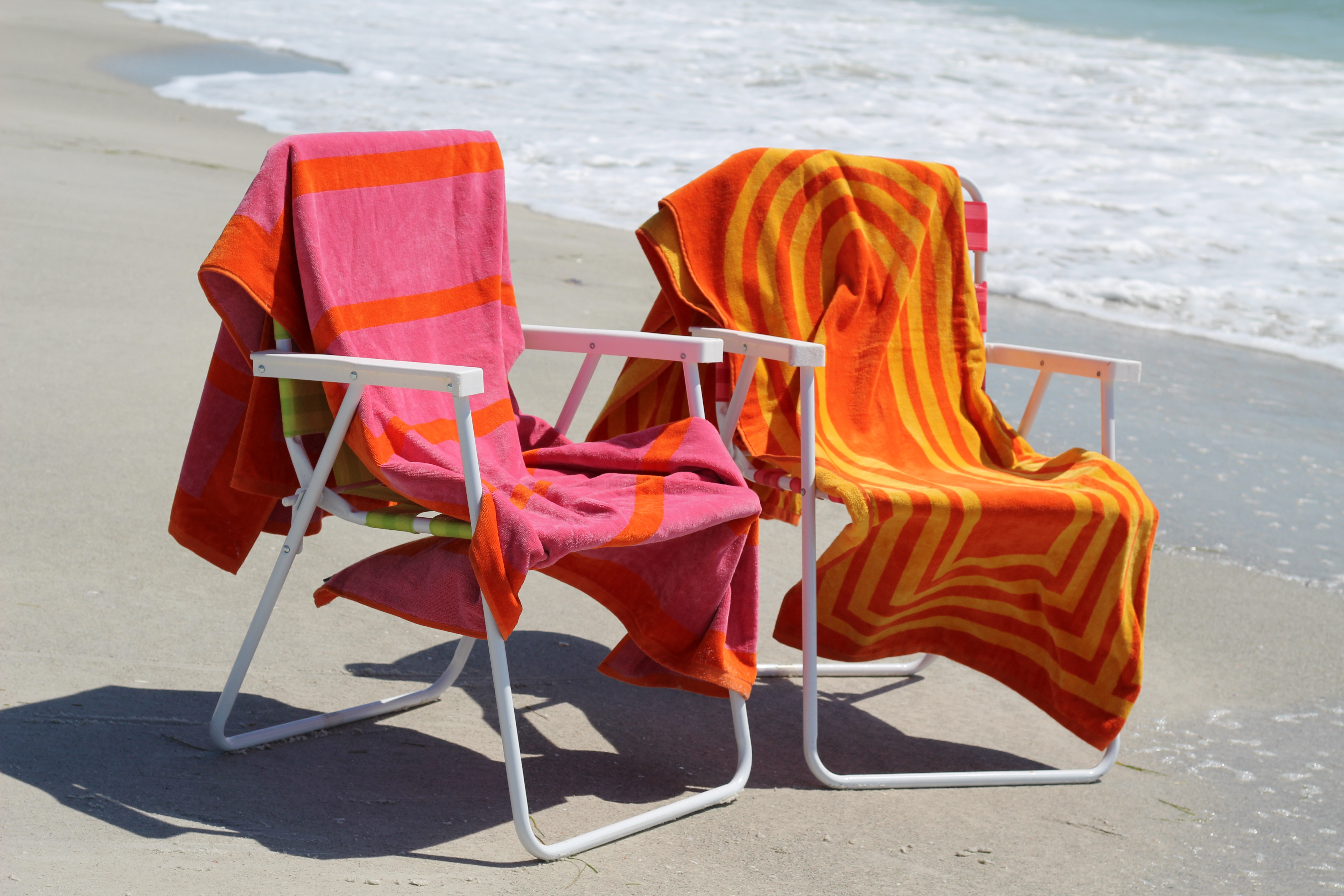 Inspired by the hues of summer, the Arc Towel Warm is a play on curves and stripes. The vibrant orange and yellow are a perfect match for a sunny day at the beach. This towel is finely woven in plush velour on one side and absorbent terry for faster drying on the reverse. Each towel comes either on its own or inside its own dive mesh pouch with contrasting trim.